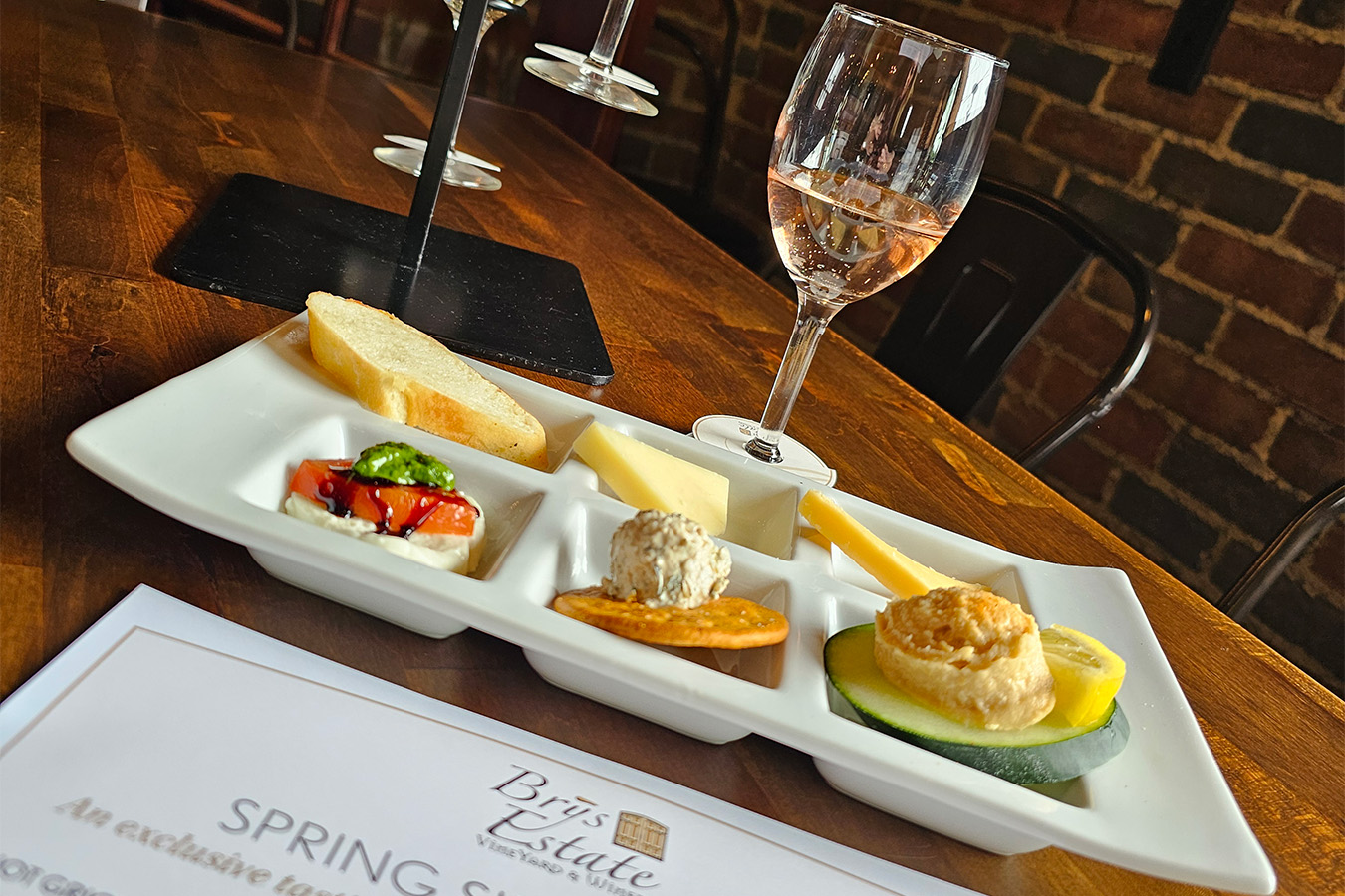Experience the harmony of sweet, savory, and expertly crafted wines with The Perfect Pairing Package at Brys Estate Vineyard & Winery. Enjoy an overnight stay paired with a curated tasting of five Brys Estate wines, each thoughtfully matched with artisanal cheeses and hand-selected bites that bring out the best in every pour. Your package also includes a custom tasting card featuring detailed pairing notes and wine insights, allowing you to savor the experience and perhaps discover a new favorite.